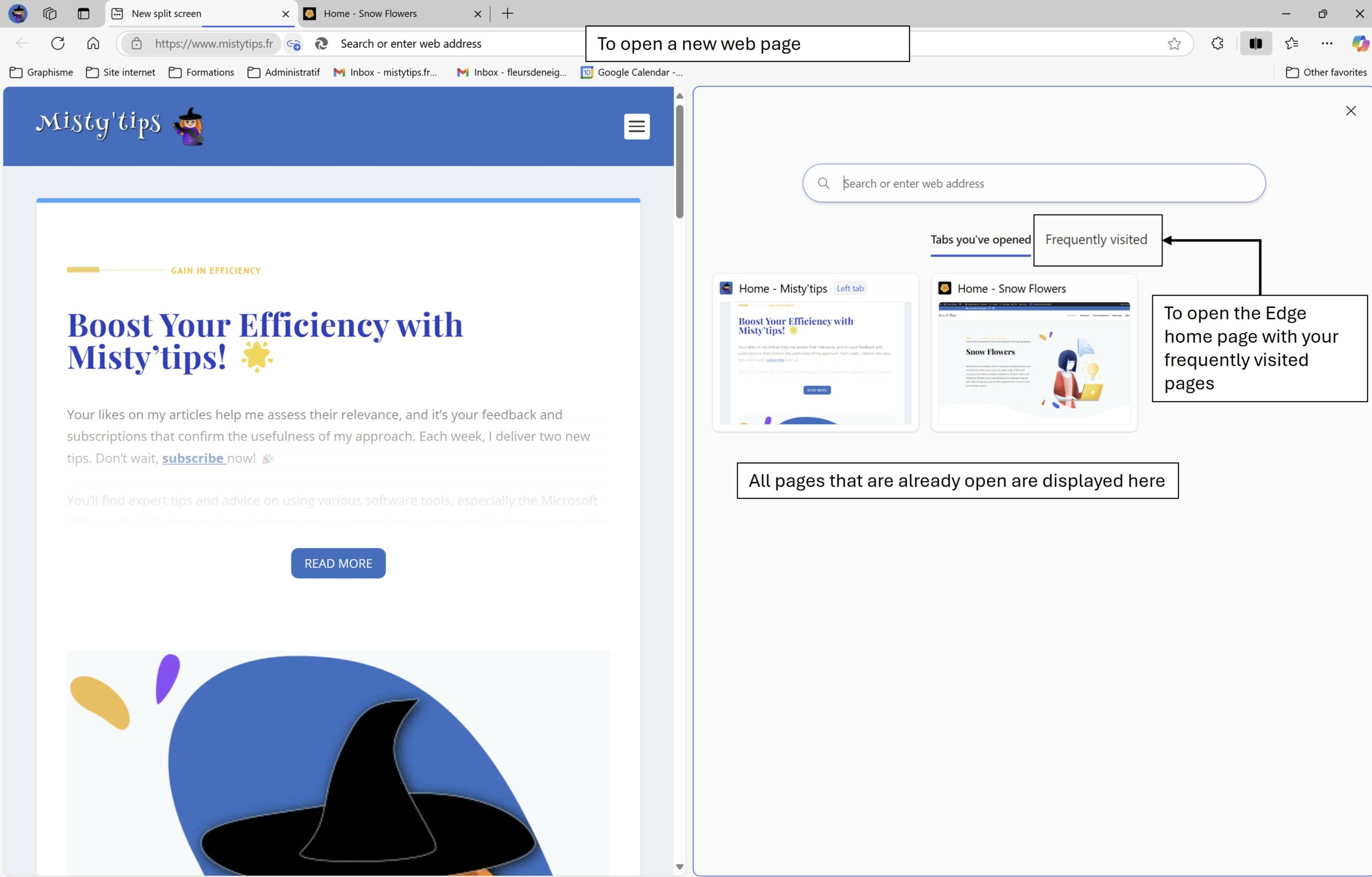 The setting of tabs in the split screen, Link tabs, is interesting. Indeed, it allows you to keep a window open with links in the left screen and open the links in the right screen.