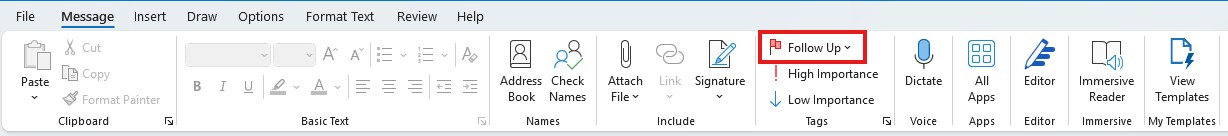 Indeed, when you are writing your email, in the Message menu, click on Follow Up.