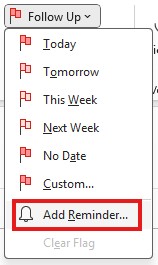 From the drop–down list, you can select the action that corresponds to your request (Reply, Forward, etc.). This clarifies the purpose of the reminder for the recipient.