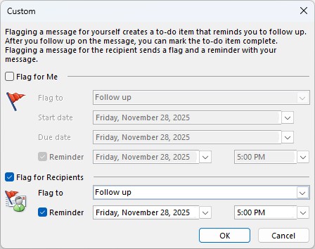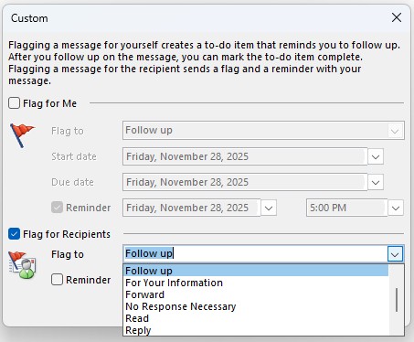 - Uncheck the Flag for Me box. (This is for sender tracking)