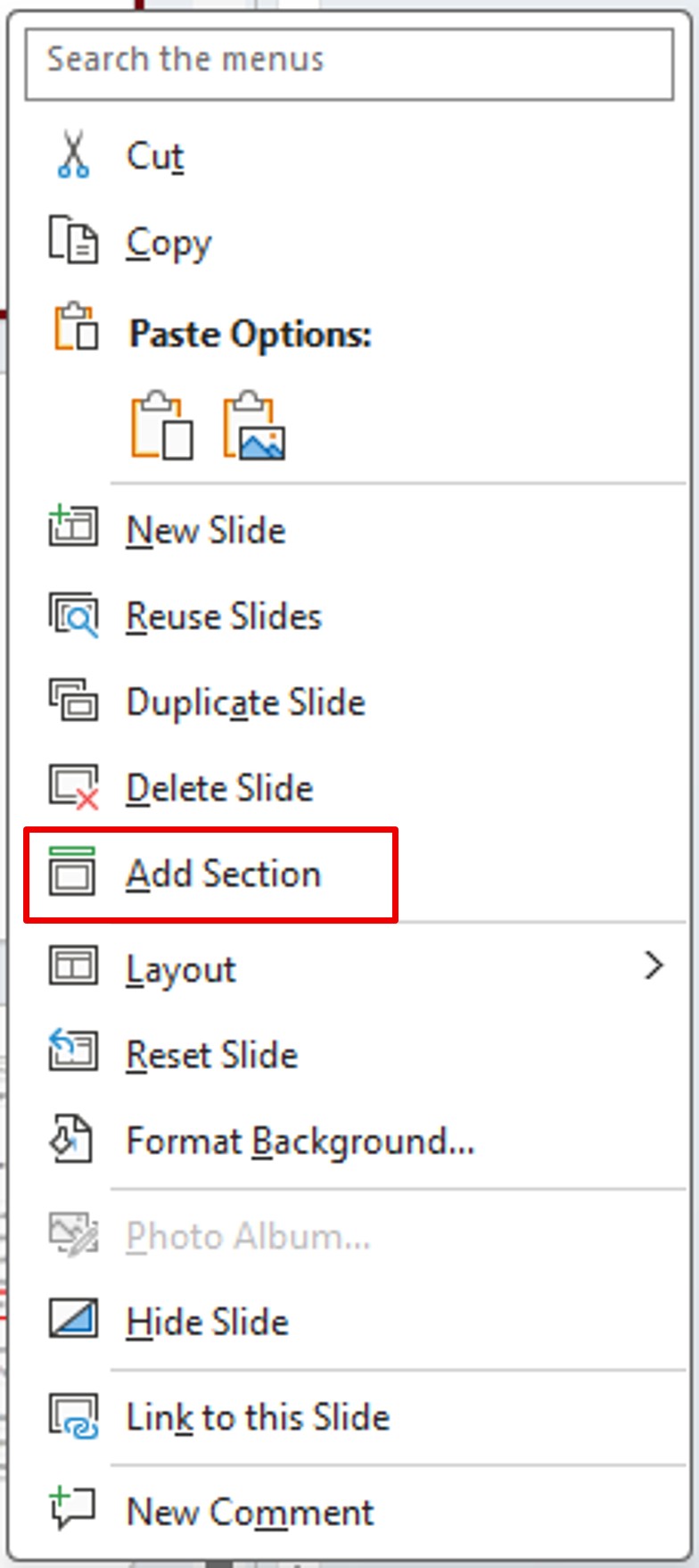 💡Tip: To reorder your sections even faster, use Slide Sorter mode.