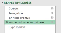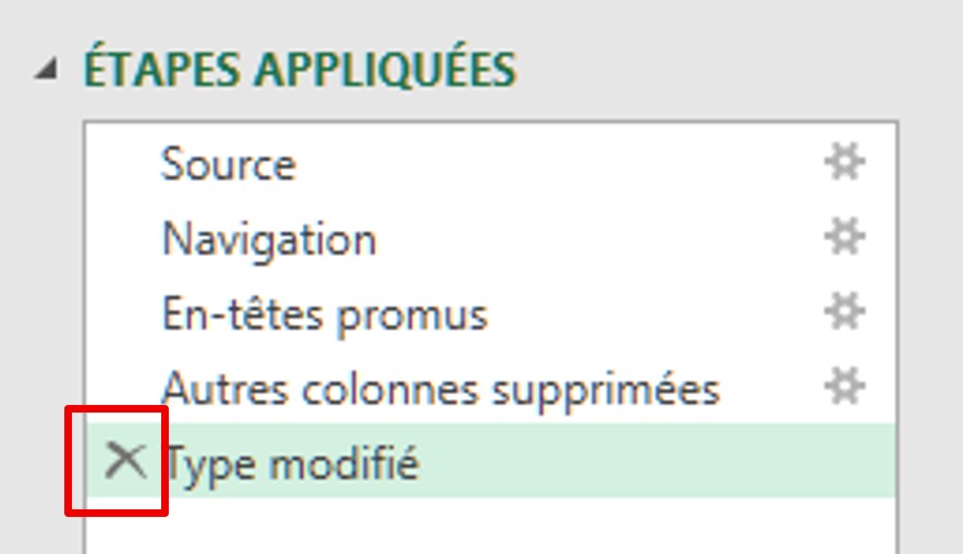 Lorsque l’on importe des données, Power Query ajoute, parfois, des étapes automatiquement : En-têtes promus et Type modifié.