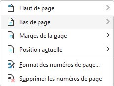 Choisissez si vous préférez afficher la numérotation des pages dans l’en-tête ou dans le pied de page.